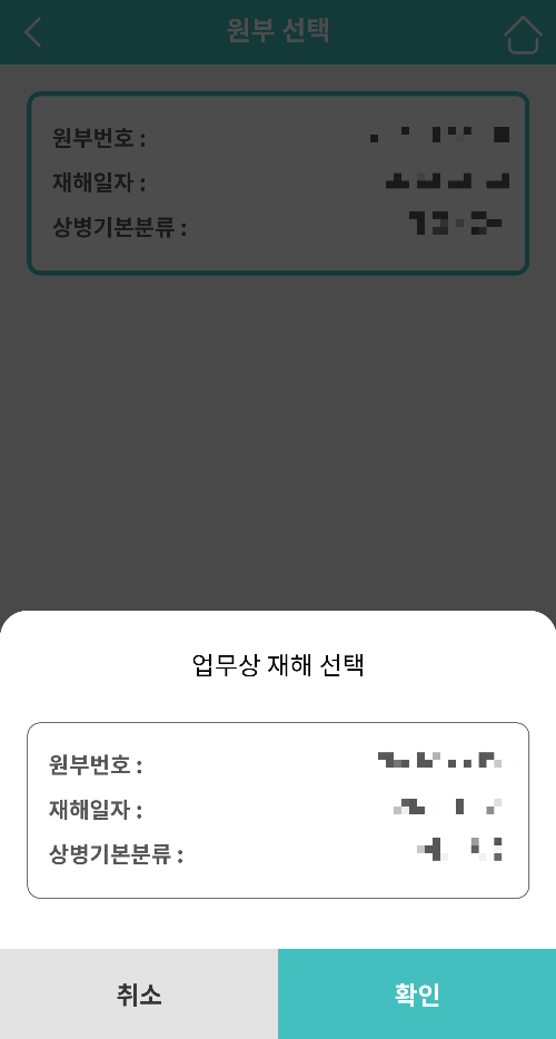 원부 선택 → 맨 밑에 선택 터치 → 맞으면 확인 터치